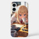 Hilarious anime phone case showing a tiny elf spilling coffee with a shocked expression. Perfect for anime fans, coffee lovers, and kawaii humour enthusiasts.