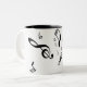 Coffee mug shown in a black and white music notes print. Customize this item or buy as is.