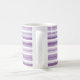 Coffee mug is shown in a purple multi colour striped print.