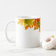 This ceramic coffee mug is shown in white with a lovely autumn leaves print.