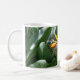 Coffee mug is shown with a photo print of the tropical flower Bird of Paradise in Hawaii.