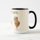 This two tone coffee mug is graced by some pretty colourful chickens to help perk you up with your favourite morning brew. Three chickens along with text reading Bless My Chickens with black interior and handle. Multi coloured over Ivory background on white mug. Customize this item or buy as designed.