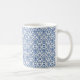 This ceramic coffee mug is shown with a lovely blue damask print design.
