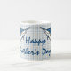 Not many fish are more incredibly beautiful than the blue marlin -- and not many fish are larger. The blue marlin is the largest of the Atlantic marlins and, seriously, one of the biggest fish in the world. As with some species, the female is often quite a bit larger than the male. Females can grow up to 14 feet long and can weigh more than 1,900 pounds, though the average runs more around 11 feet long and 300-ish pounds. A deep blue on top and silvery-white beneath, with a pronounced dorsal fin and a long, lethal, spear-shaped upper jaw (that some refer to as a bill), blue marlins are one of the most easily identifiable and recognizable fish in the world. Marlins are renown for their incredible stamina in a fight when they are hooked, which makes them a trophied favourite of big game fishermen. Though it can also be said of virtually any super big fish, I can't imagine there's much more thrilling to the avid angler than hooking one of these giants and seeing it break water in the fight. This design pays homage more to this majestic fish than the anglers that seek it. For this wonderful coffee mug, two marlins frame a text element, "Happy Father's Day". Obviously, an excellent choice for Father's Day, you are welcome to modify the text to better suit your celebration for your favourite angler.