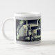 Check out this cool mug! It's got a picture of a truck powered by AI on it and the words 'hauling freight' written alongside. It's all about showing off how things move stuff around. Perfect for anyone who loves trucks and modern tech.