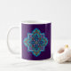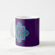 Coffee mug with an intricate mandala of blues and purples on each side.