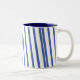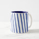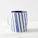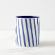 Coffee mug with blue stripes.