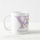Coffee Mug with Name and Floral Design. The mug Design features Monogram & Name with Flowers either side in a water colour pastel style. Example name is Yvonne. Initial is the letter Y.