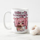Cute kawaii chibi anime girl with pink hair and heart eyes hugging giant coffee cup