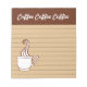 A cute coffee cup decorates this notepad.  Use this coffee notepad for a business, bakery,  coffee shop, store, boutique, orders, notes, appointments, home, office, class, kitchen,  etc....The design is from original art.