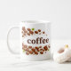 A clean and minimalist classic white mug featuring the phrase “coffee or tea” with lightly scattered coffee beans and fresh tea leaves. Designed to blend seamlessly with the white ceramic surface for a refined, modern look. Perfect for everyday coffee or tea moments and a great gift for coffee and tea lovers.