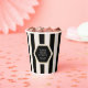 Coffee Shop Black and Cream Stripes with Gold Paper Cups