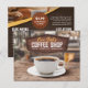 Imagine the irresistible aroma of freshly brewed coffee blending with the sweet warmth of freshly baked pastries, inviting customers to linger. If your coffee shop exudes that cozy, welcoming atmosphere, why not share it with the world through a thoughtfully designed business card? An attractive postcard for coffee shops to advertise their products, the design has rustic wood touches, a faded out coffee shop background, all in rich brown tones. On the back is an opportunity to list your menu such as coffee, croissants, sandwiches, smoothies and more, as well as a brief paragraph about your coffee store, location, phone number, email and website. The top has a badge for you to advertise a special or one of your bestselling coffees. Designed to capture the essence of your café, this postcard will not only elevate your professional image but also entice clients to experience the warmth and flavour you offer.