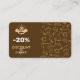 Boost your coffee shop's customer engagement with our stylish Discount Card! Featuring a charming line pattern of coffee beans, cups, and breakfast food, this card is perfect for offering special deals. With a QR code for easy scanning and your info on the back, it's a convenient and attractive way to keep customers coming back. Order now and enhance your customer loyalty program!