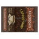 This coffee-themed rectangular cutting board is perfect for anyone who runs their own coffee shop or has a coffee theme in their home kitchen decor. Done in retro brown, orange, beige and yellow, this espresso / cappuccino inspired design features a cup on a saucer, two personalized text banners and the words "Coffee Shop / Fresh Roast / Great Flavour" in yellow.