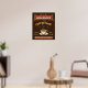 This coffee-themed rectangular wall poster is perfect for anyone who runs their own coffee shop or has a coffee theme in their home kitchen decor. Done in retro brown, orange, beige and yellow, this espresso / cappuccino inspired design features a cup on a saucer, two personalized text banners and the words "Coffee Shop / Fresh Roast / Great Flavour" in yellow.