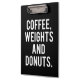Coffee, Weights and Doughnuts - Funny Novelty Gym Clipboard