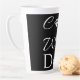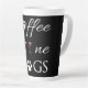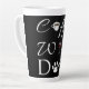 Perfect mug for those who love coffee, wine, and dogs. Latte Mug design features a fancy text for coffee with a coffee cup adornment for the letter "o", wine which contains a glass of red wine for the letter "i", and dogs with a paw print embellishment in replacement of the "o". Additional gift items available with this design as well.