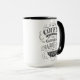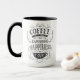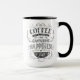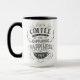 This mug features whimsical hand lettering that says "Coffee with a friend is like capturing happiness in a cup" on a white background. The lettering features decorative swashes and ornamental swirls. The design is repeated on the back.