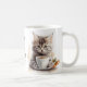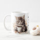 Adorable illustrations of cute kittens with a coffee cup accented with flowers, the text reads: "Mornings are for having coffee with my cat" and this can be changed to anything you like - Each side of the mug has a different kitten illustration - we offer 16 different mugs so you can mix and match creating a cute coordinated set as a lovely gift for a housewarming, Christmas or new kitten in the family.
