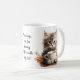 Adorable illustrations of cute kittens with a coffee cup accented with flowers, the text reads: "Mornings are for having coffee with my cat" and this can be changed to anything you like - Each side of the mug has a different kitten illustration - we offer 16 different mugs so you can mix and match creating a cute coordinated set as a lovely gift for a housewarming, Christmas or new kitten in the family.