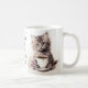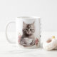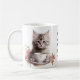 Adorable illustrations of cute kittens with a coffee cup accented with flowers, the text reads: "Mornings are for having coffee with my cat" and this can be changed to anything you like - Each side of the mug has a different kitten illustration - we offer 16 different mugs so you can mix and match creating a cute coordinated set as a lovely gift for a housewarming, Christmas or new kitten in the family.
