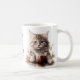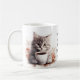 Adorable illustrations of cute kittens with a coffee cup accented with flowers, the text reads: "Mornings are for having coffee with my cat" and this can be changed to anything you like - Each side of the mug has a different kitten illustration - we offer 16 different mugs so you can mix and match creating a cute coordinated set as a lovely gift for a housewarming, Christmas or new kitten in the family.