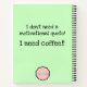 This pastel green notebook has a happy and cute cartoon dinosaur with a coffee mug and a text "Coffeezilla" on it's front cover. This kawaii dino design is hand drawn with markers and coloured pencils. The back cover text "I don't need a motivational quote! I need coffee!!" can be customized to anything else you'd like your notebook to say. The background colour is also changeable.