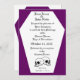 White and purple / violet invitation with a coffin outline that has skulls on both sides and optional "Til Death Do Us Part" on the back. Perfect for many occasions such as weddings, birthdays, Halloween parties, holiday gatherings and announcements. Available in other colours.