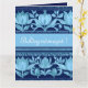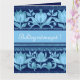 Cette grande carte de voeux, inspirée des motifs de torse de tulipe hongrois, présente un design dans les bleus foncés et clairs avec une touche rustique. La carte comprend le message "Boldog Névnapot !" qui se traduit par "Joyeux Jour du Nom". Créé en collaboration avec Magic Media AI et la créatrice hongroise Alma Wad.
