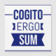 "Cogito, ergo sum" is René Descartes' iconic Latin quote, showcased with a striking blue and white typography design. Calling all math enthusiasts, thinkers, sceptics, students, and teachers from around the globe, including those with a passion for Latin!