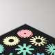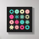 An attractive square arrangement of 16 different style cog wheels in a pallet of attractive colours.