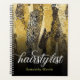 Livre de rendez-vous / planificateur de coiffure moderne glam. Le design présente un arrière - plan poster de animal or et une "coiffeuse" en écriture manuscrite. Personnalisez avec un nom.