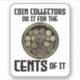 Add a touch of humour to your coin collecting journey with our whimsical sticker. Join the passionate community of coin enthusiasts and discover the world of numismatics, one 'cent' at a time!.