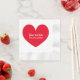 Coined cocktail napkins for romantic wedding or engagement. White party napkins with red heart logo. Personalize with your own text. Change into any colour.