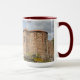 Mug with a picture of the medieval castle of Colchester in Essex, England, United Kingdom. It also has the words "Colchester" (in blue) and "England" (in red). Customizable.