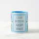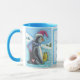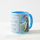 WISTFUL PENGUIN WILL MELT YOUR HEART. HUMOROUS CHRISTMAS COMBO MUG Blue, Verse: " COLD BOTTOM WARM HEART " *Customize ....Look For Matching Items Susan Brack Design