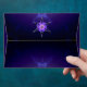 This chilly abstract was created from an Apophysis fractal turned into a six-pointed kaleidoscope. The design is overlaid with a silver-framed snowflake with inlaid deep blue, purple, and lavender set with round soft pink gems and accented with a deep pink jewel in the centre. The whole piece gives the effect of a soft, snowy light shining through a the black and midnight blue of a dark winter night.
