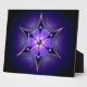 This chilly abstract was created from an Apophysis fractal turned into a six-pointed kaleidoscope. The design is overlaid with a silver-framed snowflake with inlaid deep blue, purple, and lavender set with round soft pink gems and accented with a deep pink jewel in the centre. The whole piece gives the effect of a soft, snowy light shining through a the black and midnight blue of a dark winter night.