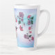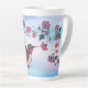 Personnalisez cette "Mug Latte de Colibri" unique en son genre ! Il présente un colibri adorable siroter le nectar de belles grandes fleurs roses et violettes...sur un Arrière - plan Cloud rose et violet ! Peinture d'art original par l'artiste Kerry Miller.