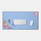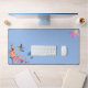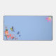 Beau colibri, papillons et fleurs roses sur bleu clair.