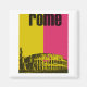 The Coliseum in Rome design contrasts bright, cool and contemporary colours with the historic ruins of the Coliseum in Rome. A graphic image in black of the Roman Coliseum is filled with a bright yellow colour. This same bright yellow colour forms one of the two stripes that comprise thew background. The second stripe is in a deep but bright pink colour. The word rome is displayed in dark letters at the top of the design. If you have a love for Roma, Italy and pop art, then the Coliseum in Rome design is for you!