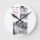 Collage Couple Photo & Romantic Quote To The Moon Round Clock