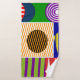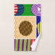 Ce kit de serviettes a un design Bauhaus de formes et de lignes faisant un collage dans les couleurs primaires et secondaires.