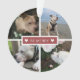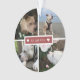 Conception moderne avec 4 photos dans une grille avec un modèle de texte central dans une boîte rouge poussiéreuse "sois joyeux" avec des cœurs et un message personnel sur l'ornement arrière.
