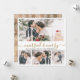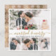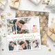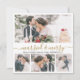 Élégante calligraphie moderne blanc et or 4 Collage photo Marié et Joyeuse carte de Noël. Cette carte de noël mimimaliste festive et mariée comporte quatre (4) photos de grille et le texte de salut "Marié et Joyeux" qui est écrit dans une belle main lettré tourbillonnant swash-tail type de police en or et blanc. Sur le côté inverse, de jolis flocons de neige enneigés sur arrière - plan de fausse feuille d'or. Jolies cartes de voeux moyen facile d'envoyer des salutations à la famille et les amis pour votre premier Noël en tant que mari et femme en période de Noël.