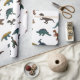 This kid-friendly wrapping paper features a collage of photos of plastic toy dinosaurs in assorted colours. It's perfect for wrapping up gifts for young dinosaur fans or for adding a touch of nostalgia to presents for those who are too old for playing with toys.