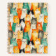 Journal in a a collage of cats in various shades of orange, white, grey, beige, and black and white. Each cat has a distinct expression, ranging from curious to content. The watercolor style and repetition creates a lively, playful pattern.