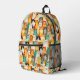 Backpack in a collage of cats in various shades of orange, white, grey, beige, and black and white. Each cat has a distinct expression, ranging from curious to content. The watercolor style and repetition creates a lively, playful pattern.