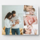 Créez votre propre plaque photo bébé avec 4 de vos photos préférées. Le modèle photo est mis en place pour créer un collage photo avec une photo principale, légèrement recouvert des trois autres photos en zigzag vertical. Vos images sont affichées en format portrait et paysage avec des cadres blancs.
